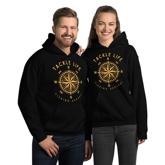 TLF Nautical Compass Unisex Hoodie -- Gold Logo on Black, Navy, Maroon, Red, Dark Heather, Indigo Blue, Irish Green, Military Green