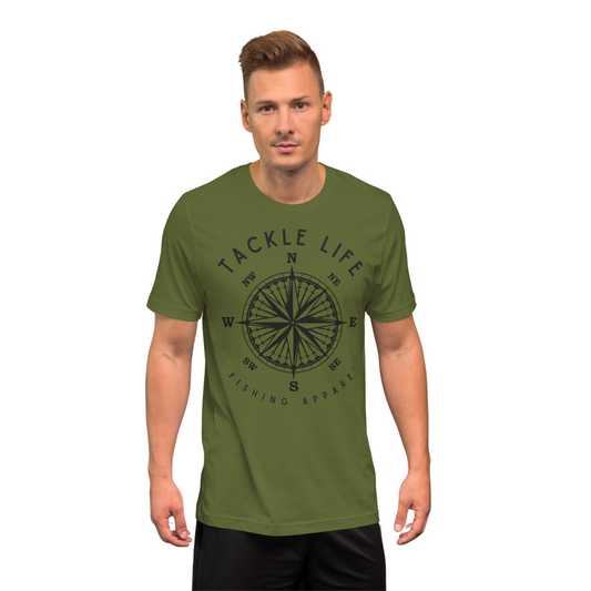 TLF Nautical Compass Unisex T-Shirt -- Black Logo on Olive, Autumn, Burnt Orange, Mustard, Athletic Heather, Ocean Blue, Yellow, Citron, or White