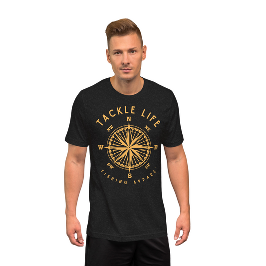 TLF Nautical Compass Unisex T-Shirt -- Gold Logo on Black Heather, Navy, Brown, Maroon, Red, True Royal, Olive, Heather Deep Teal, Kelly, or White